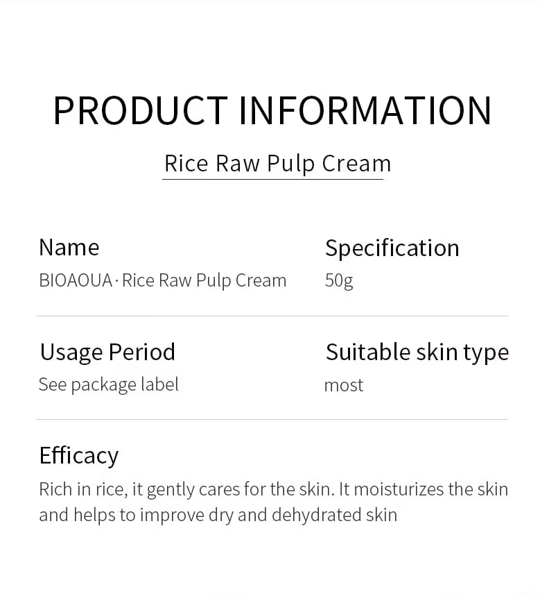 ছাড়BIOAQUA Rice Extract Raw Pulp Face Cream Moisturizing Skin Care Shrink Pores Facial Anti-Aging Moisturizer Smooth Fine Lines 50g / 1.76oz