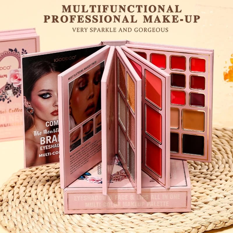 IGOODCO 78-Color 5-Page Book Style Makeup Palette is the ultimate all-in-one makeup kit, designed for beginners and professionals alike. With a stunning variety of eyeshadows, blushes, highlighters, contours, concealers, kajal, and lipsticks, this palette offers everything you need for a complete makeup look in one compact, travel-friendly design. Whether you’re creating a natural daytime glow or a bold, dramatic look, this palette has got you covered!