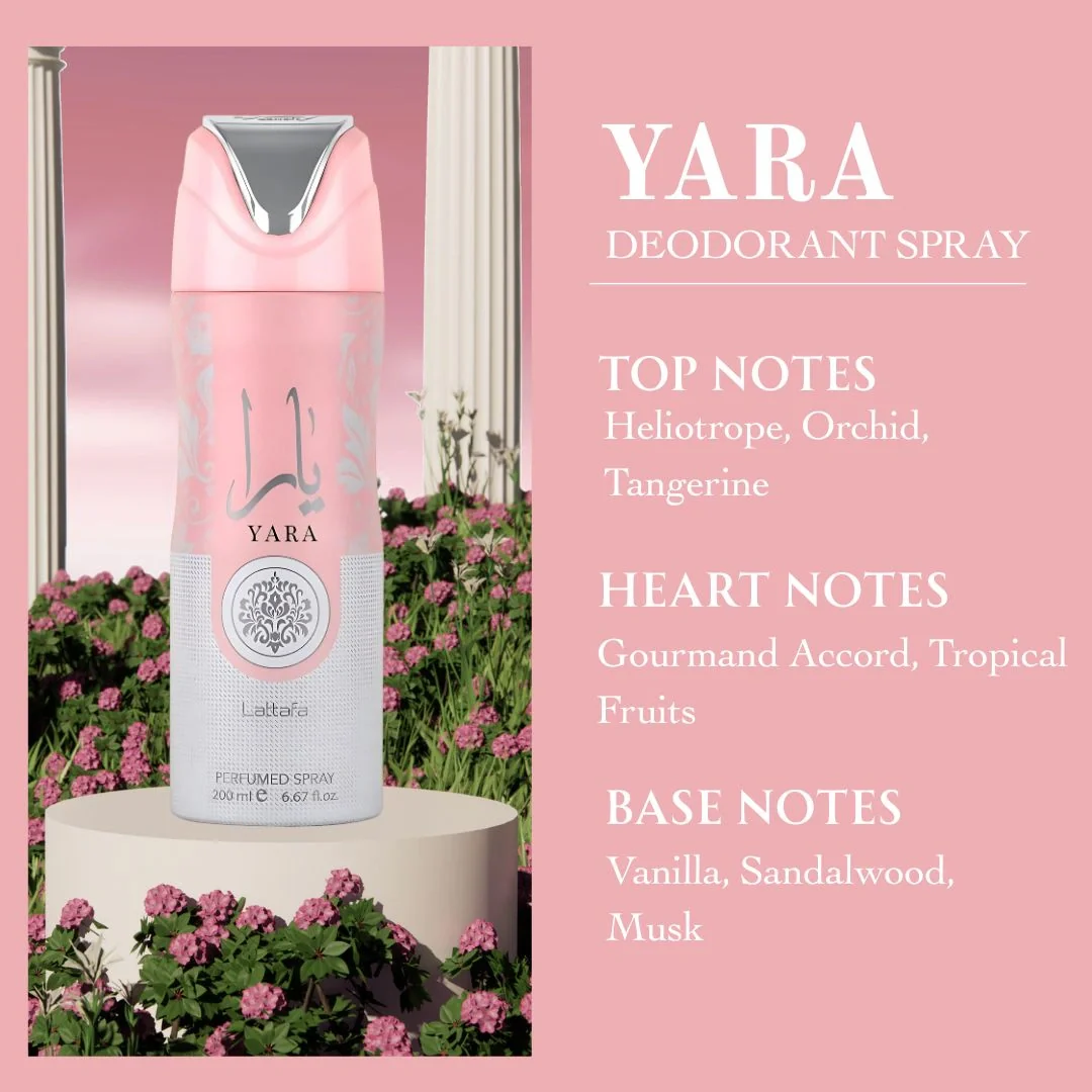 Lattafa Yara Concentrated Extra Long Lasting Body Spray For Men & Women 200ml.